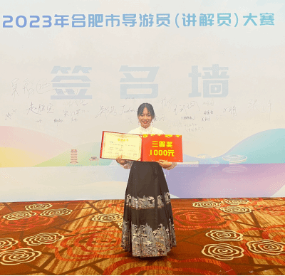 本网讯 在刚刚结束的2023年合肥市导游员(讲解员)大赛中,威廉希尔williamhill2011届涉外旅游专业毕业生岳真真、2023届商务英语(旅游)专业毕业生朱明霞分别获得“外语导游组”一等奖和三等奖的好成绩。