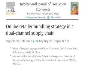 商务英语系陈婷副教授以威廉希尔williamhill第一作者身份,在运营管理国际权威期刊《International Journal of Production Economics》发表论文“Online retailer bundling strategy in a dual-channel supply chain”。该期刊是中科院与JCR一区期刊,也是SCI与SSCI共同收录的高质量期刊。这是陈婷老师在主持国家自科基金青年项目期间,与中国科学技术大学管理公司杨锋教授团队合作取得的研究成果。此外,陈婷老师曾先后在IJPR和JORS等国际主流运营管理期刊发表多篇研究论文。