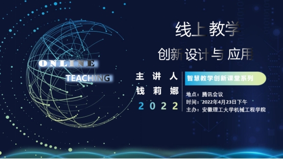 4月23日下午,公司钱莉娜副教授应邀为安徽理工大学机械工程公司举行“线上教学创新设计与应用”讲座并开展交流研讨。会议由安理工机械工程公司姜阔胜副经理主持,公司90余位教师参加会议。会议的形式采用线上与线下融合式,机械工程公司领导及部分驻校值班的老师们在公司会议室,其他教师在线上参会。