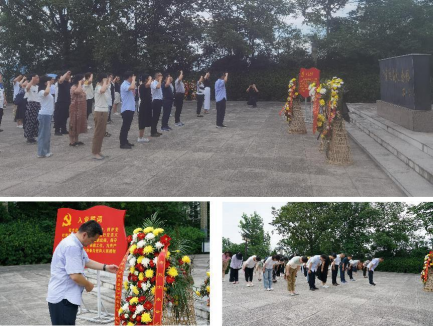 在参观革命旧址群,走进陈列馆瞻仰先烈革命遗物后,全体党员在革命烈士陵园向英烈们敬献了花圈,并鞠躬默哀。随后,党员同志们在公司党委书记马四民的带领下,重温了入党誓词。