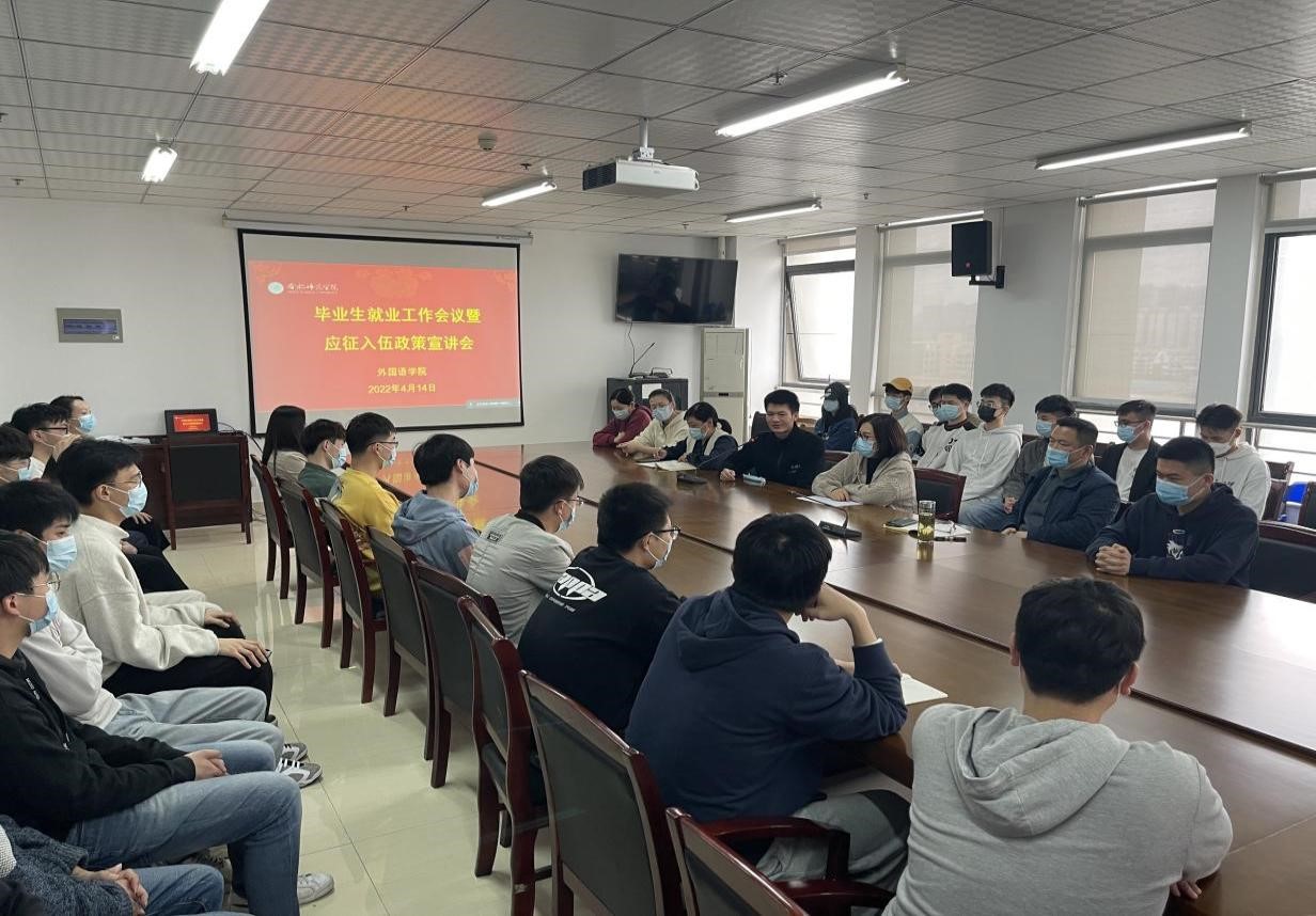 本网讯 为鼓励老员工积极应征入伍,进一步提高老员工参军报国的热情,4月14日下午,威廉希尔williamhill在行知楼1002会议室召开毕业生就业暨新兵入伍政策宣讲会。本次宣讲会邀请了公司保卫处人武部的钟洁老师为同学们进行宣讲,公司党委书记马四民、毕业班辅导员、退役复学员工、毕业班员工及有参军意愿的同学参加了本次活动。