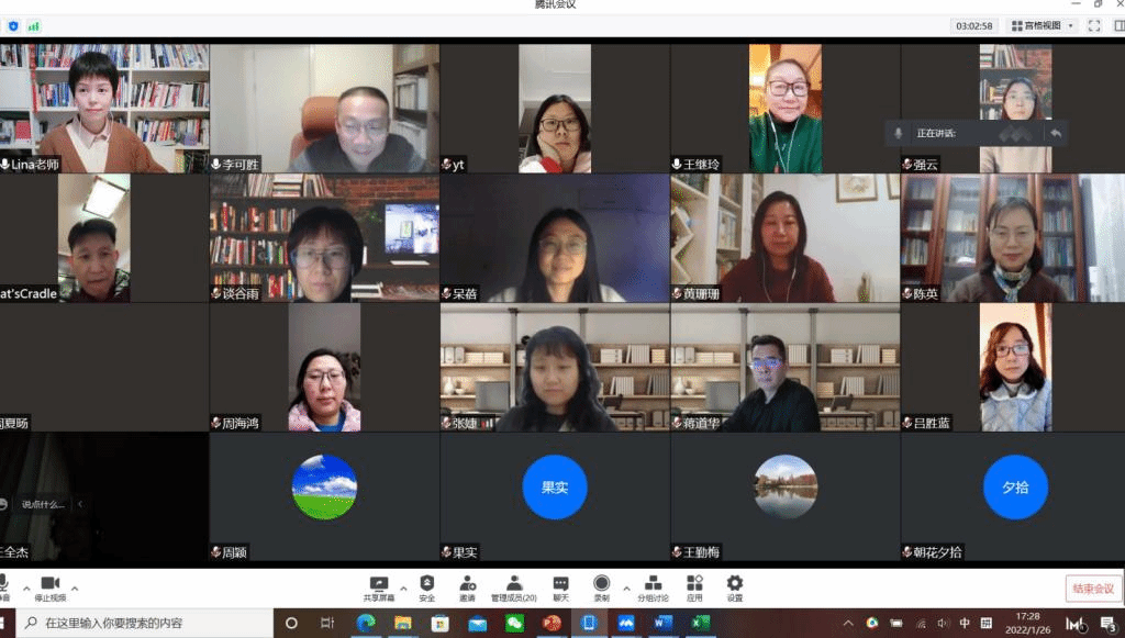 本网讯 2022年1月26日下午,威廉希尔williamhill召开了英语专业实习(研习)总结会议,会议通过腾讯会议软件线上进行。副经理李可胜,英语系主任王继玲老师,副主任钱莉娜老师以及全体实习指导教师参与了本次会议,会议由英语系副主任钱莉娜老师主持。