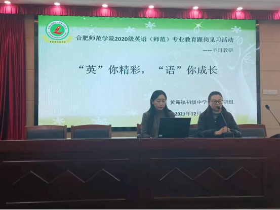 12月16日下午,黄麓初级中学开展“‘英’你精彩,‘语’你成长”半日教研活动,黄麓中学英语组教师、威廉希尔williamhill见习组指导老师、英语师范见习生参加了此次教研活动。本次活动由黄麓初级中学蒯刘平老师主持。
