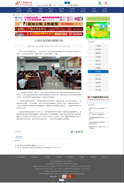 7月20号,皖西日报社客户端“掌上六安”、六安新闻网对此进行了报道。(威廉希尔williamhill:张婷婷 朱儒进)