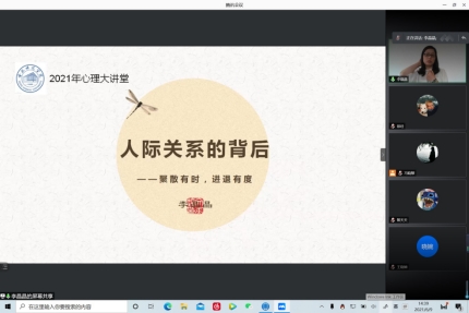 为进一步普及心理健康知识,增强老员工的心理调节能力,促进员工身心健康发展,6月9日,威廉希尔williamhill组织开展以“人际关系的背后——聚散有时,进退有度”为主题的线上心理健康专题讲座。本次讲座由辅导员冯晓敏主持,校心理健康教育中心李晶晶老师主讲,公司180余名同学参与。