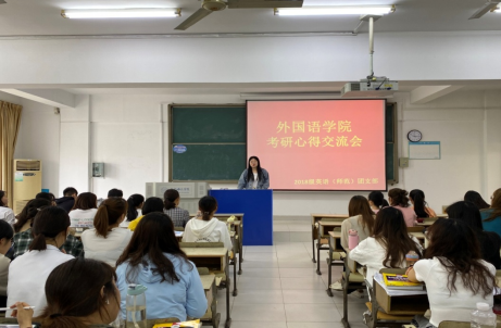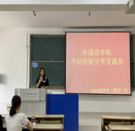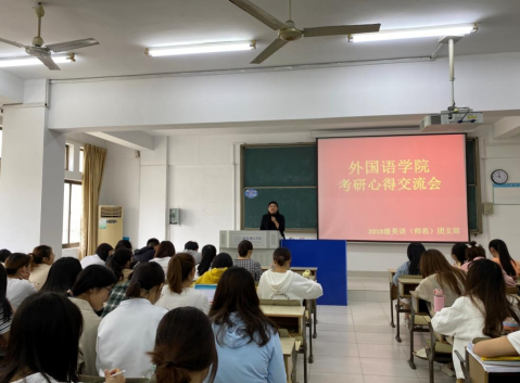 接着,由英语(师范)班石莹为大家分享考研历程。首先她分享了自己各个科目备考的方法以及自己的考研作息时间表,着重强调在考研期间需要调整好自己的心态,按照自己的计划脚踏实地,不骄不躁,要有不到最后一刻永不放弃的决心。同时在考研这个艰辛的旅途中,更需要找到志同道合的朋友来分享痛苦与喜悦,在枯燥的备考过程中也要尽力寻找欢乐的事情来调节自己的情绪。