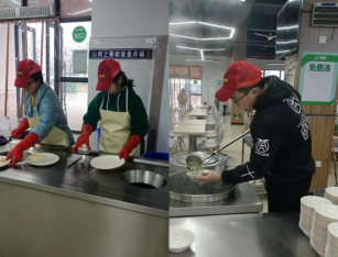 走进公司食堂,清理就餐环境。活动伊始,各班班委带领同学们在桂园食堂一楼集合,班委在与餐厅负责人沟通好劳动的内容和注意事项后,便安排同学们分别前往不同楼层进行劳动,主要劳动内容是帮助食堂工作人员清理饭后餐具、摆放桌椅、抹桌子、舀汤。同学们带上手套,彼此之间互相配合,合作有序,努力营造一个卫生整洁的就餐环境。