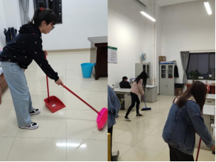 参与志愿劳动,践行劳动精神。各年级同学们纷纷走进物业办公室和公司办公室,在班委的安排下,大家拿起扫帚、拖把、抹布等劳动工具,仔细打扫室内的各个角落,在大家的共同协作下,室内环境变得焕然一新。谈及参加志愿劳动的感受,2020级英语(师范)专业的王晓婉说:“热爱劳动是中华民族的传统美德,我觉得参加义务劳动是一次很好的实践机会,不仅能够锻炼同学们吃苦耐劳的能力,也能培养同学间的团结合作精神,作为新时代的青年学子,我们有责任为建设文明校园贡献一份力量。”