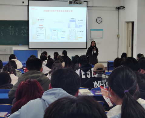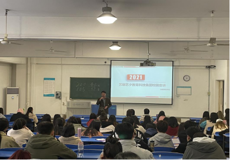 本次宣讲会由艺朝艺夕教育科技集团有限公司校企合作处主管徐华飞和合肥猿文教育科技有限公司校招经理邢萍萍分别进行招聘宣讲。徐华飞先为同学们分析了当前的就业形势以及老员工求职中普遍遇到的困惑,并介绍了“艺朝艺夕”的概况、招聘岗位、薪资待遇以及员工福利等等。随后邢萍萍为同学们介绍了“猿辅导”的概况、发展规模、岗位需求以及员工职业发展方向等等。