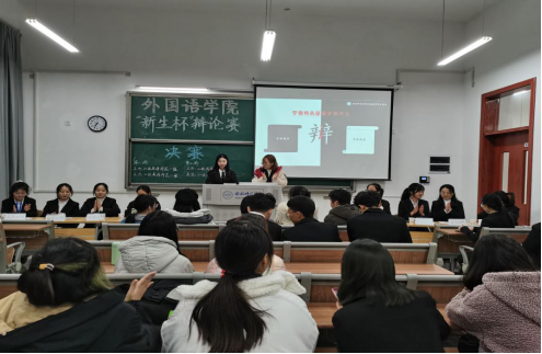 在主持人宣读辩论赛规则与注意事项且双方辩手自我介绍后,比赛正式开始。第一场比赛围绕话题“网络是否使人亲近”展开辩论,双方辩手经历了初赛之后表现更加成熟,辩论时字字珠玑,妙语连珠,引领现场气氛热烈。第二场比赛以“宁做鸡头还是宁做凤尾”为辩题展开了激烈辩论,攻辩环节中双方辩手据理力争、思维严密,抓住对方漏洞,将本场辩论推向高潮。