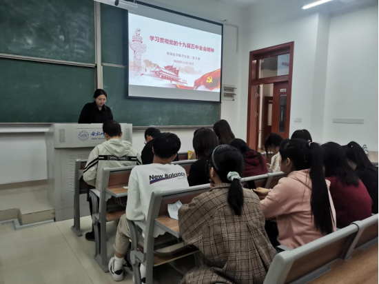会上,冯晓敏带领同学们认真学习《中国共产党第十九届中央委员会第五次全体会议公报》以及《中共中央关于制定国民经济和社会发展第十四个五年规划和二〇三五年远景目标的建议》文件内容,并介绍了中国共产党第十九届中央委员会第五次全体会议的重要意义。她强调,要认真学习党的十九届五中全会精神,结合自身实际进行充分思考和体会,要紧跟时代发展,加强理论学习,不断用党的先进思想武装头脑,指导实践。