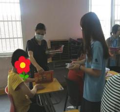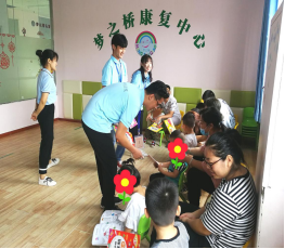 在了解该康复中心的概况和员工情况后,李新宇对这些特殊的孩子们表示特别关心,与各位辅导员老师及“小先生”们一起给小学员们分发慰问品。