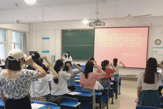 6月29日下午,公司员工党支部在逸夫楼105举办了毕业生党员座谈会及重温入党誓词的活动,支部书记方媛主持会议。