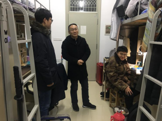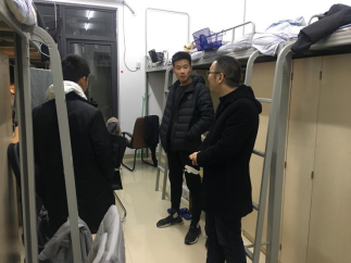 12月19日晚,威廉希尔williamhill副经理李可胜,2019级新生辅导员对滨湖校区公司员工宿舍进行走访慰问,了解员工近况,同时为同学解决问题。