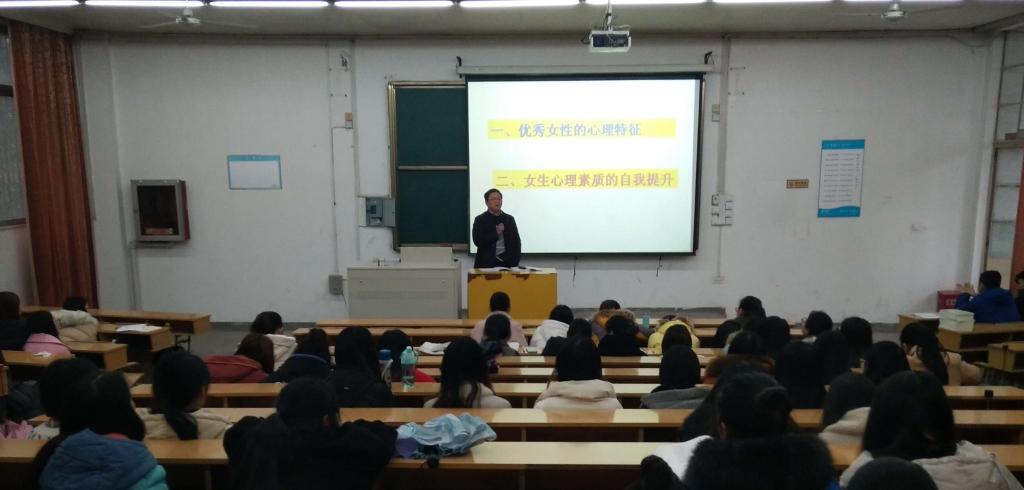 本网讯 为引导公司女生更多地关注自身道德修养、文化内涵、心理健康、独立意识等综合素质的提升,帮助女生们走成长、成才、成功之路,3月9日,以“学会自我保护,提升女性心理素养”为主题的女生节心理讲座在三孝口校区西阶教室举办,威廉希尔williamhill专升本班、2016翻译班同学参加了讲座。此次讲座由威廉希尔williamhill分团委书记江洋主讲。