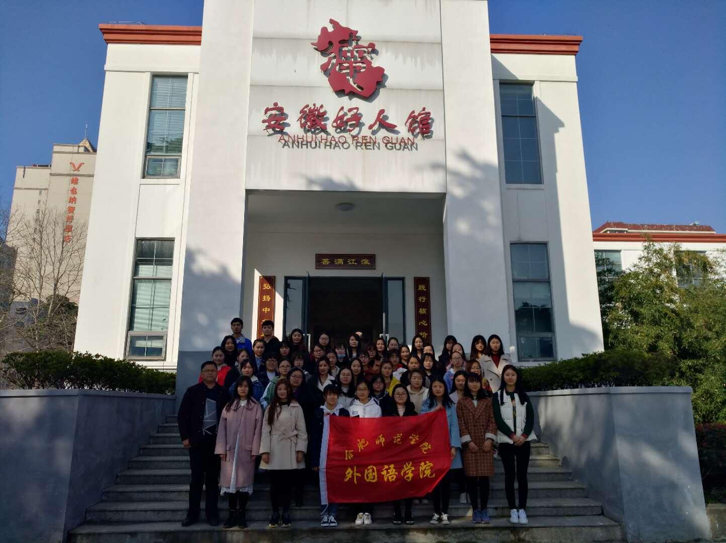 在江洋的带领下,同学们先后参观了“崇德向善”、“见贤思齐”和“春风化雨”三个展区,通过讲解员的精彩讲解以及展馆内视频音像等科技技术带来的视听效果,一位位皖籍名人的面容鲜活起来,仿佛重演着往昔波澜壮阔历史中的每一幕。逼真的人物蜡像和珍贵的文献笔记使同学们近距离、多方位地学习了解了近年829位入列中国好人榜的安徽好人事迹,直观地感受到好人模范的崇高品质。一位位安徽好人的感人事迹给同学们带来了一次心灵的洗礼,让他们感受到了美丽心灵带给人的温暖。同学们在参观结束后感慨万千,2017级专升本班员工党员刁海蓉表示:好人就在我们身边,我们一定要以雷锋同志为榜样,从身边小事做起,用行动贯彻落实社会主义核心价值观。2016级翻译班李欣宇同学在参观中说到,通过了解安徽好人,我们深切地体会到新时代的雷锋就在我们身边,作为当代老员工,我要学习雷锋精神,传承雷锋精神,更应该弘扬雷锋精神,做一名雷锋式的新时代老员工。