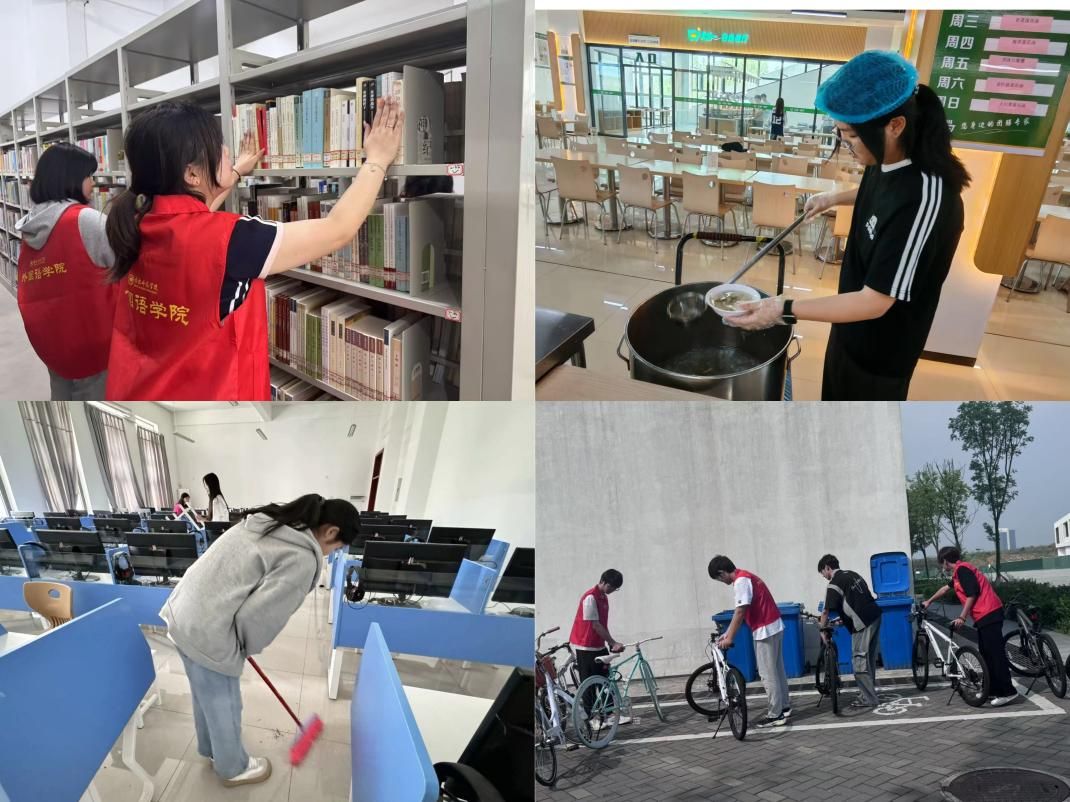 在基础劳动实践中,各班员工分组开展教室打扫、宿舍环境优化、语音室清洁美化等日常劳动项目,培养良好劳动习惯和责任意识。在特色劳动实践中,各班级轮流参加图书馆“书香护航”行动,化身图书管理员,整理书籍,清洁卫生;在食堂“一粥一饭”实践中,同学们参与桌面清洁、餐具回收等环节,体验餐饮工作的艰辛;在“沃土育青禾”劳动基地实践中,同学们在专业指导下翻土播种,搭架浇水,种植黄瓜和蔬菜,体验农耕乐趣。“从育苗到采摘,看着黄瓜的成熟,我们感受到生命成长的力量,才懂“一蔬一饭皆辛苦”的含义,劳动让课本里的道理,在泥土芬芳中鲜活起来。”2024级英语(师范)专业陈旭说道。
