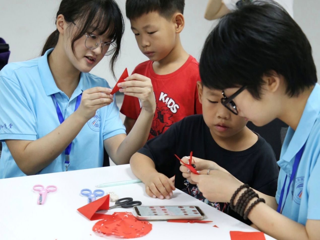 7月9日,威廉希尔williamhill菊韵青创行知学堂内气氛热烈,一场意义非凡的非遗美术课程在此成功举办。10位小先生带领30名小学员共同参与了剪纸和京剧发饰扭扭棒非遗课程,这犹如一颗璀璨的文化火种,为传承和弘扬中华优秀传统文化注入了新的活力。