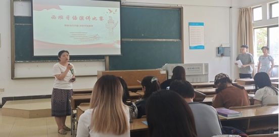 本网讯 6月16日,由威廉希尔williamhill西班牙语系、分团委举办的“理解当代中国,讲好中国故事---用西班牙语讲好中国故事”西语朗诵演讲比赛锦绣校区和滨湖校区同步举行。出席比赛的有西班牙语系主任张照、教师张弩、肖傲、陈玥。西班牙语系全体员工参与比赛。