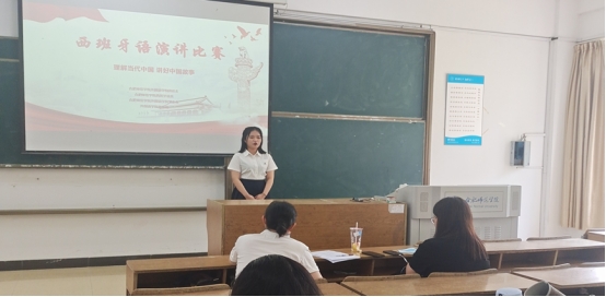 比赛中,23名选手生动地从不同侧面展现了“中国故事”,用流畅的西语表达了新青年对中国精神的理解,现场氛围紧张而热烈,经过激烈角逐,一等奖由李卓妍、李晓萌获得,二等奖由朱珈庆、龙与裳、车达江等人摘得,白垭祺、张佳雪、安晓丽等人获得三等奖,优秀奖则由尹施雯、康希茹等获得。