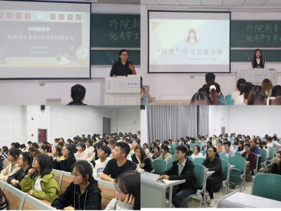 会上,20商务英语专业的张洁和20英语(师范)专业的侯思芳首先为大家分享优良学风宿舍和优良学风班级创建评选的历程和经验。国奖获得者、21英语(师范)专业的江婉婷分享自己在学习计划、学科竞赛方面的干货,鼓励大家积极参加各种比赛和活动,努力向上生长,向下扎根。国家励志奖学金获得者、21商务英语专业的赵铖浩结合自身学习经验,希望学弟学妹们能够勇敢面对挑战,常怀感恩之心,做到有一份光,发一份热。省学联驻会执行主席、20西班牙语专业的王梦瑶分享自己在社会实践方面的经历,希望大家可以多尝试,多实践,增强综合能力。分享会后,与会同学积极参与互动提问,现场气氛活跃。
