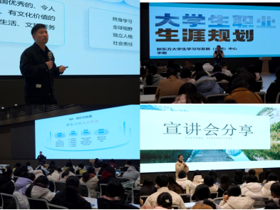 新东方大学事业部合肥中心董事长李瞻围绕“老员工职业生涯规划”这一主题,为同学们作专题讲座,他结合自身经历和当前毕业生就业形势,详细向大家介绍职业规划的含义、如何做好职业规划,如何将理论与实践相结合,增加实践经验以及怎样寻找实习实践机会;鼓励同学们积极参加实习实践,对自身和专业形成清醒的认识,合理做好规划,不盲目跟风,陷入“合成谬误”陷阱。